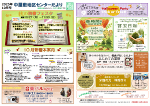 中屋敷地区センターだより2025年(令和7年)10月号を発行しました。